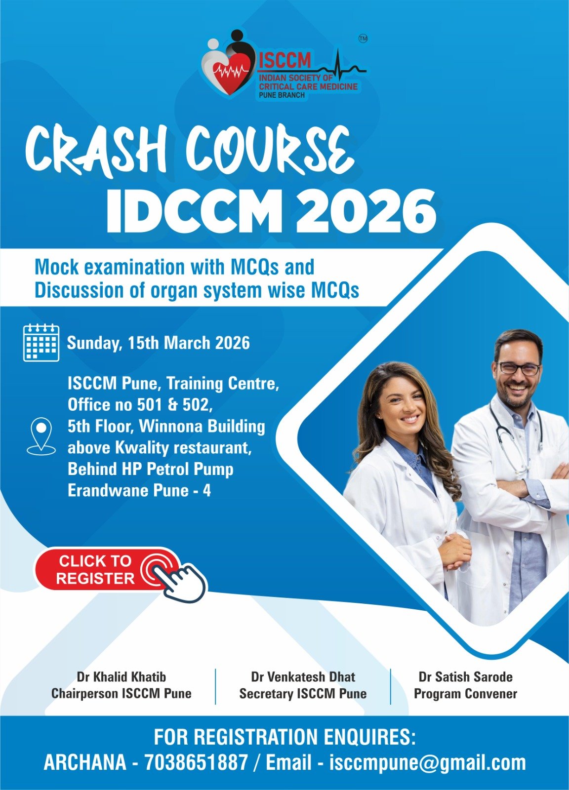 Constituted in 1993 Indian Society of Critical Care Medicine (ISCCM) is the largest non-profit association of Indian Physicians, Nurses, and other allied health care professionals involved in the care of the critically ill. ISCCM is a National Organization and now has a membership of over 6000 members, comprising of more than 30 city branches all across India.